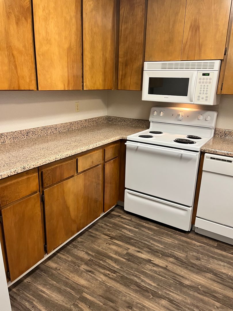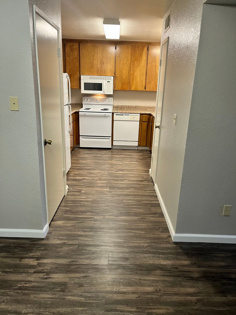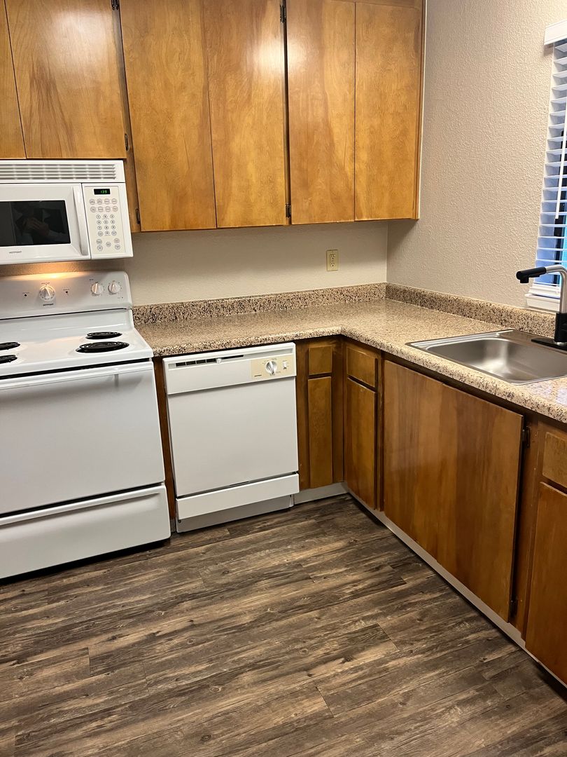 Cute and cozy gated community! If you're looking for a LARGE 1-bedroom apartment with Washer/Dryer and wood burning fireplace, New Carpet, in the Pocket Neighborhood, here it is!